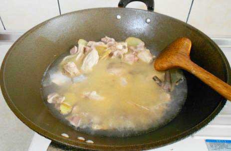 倒入鸡块翻炒,炒至鸡肉表面断生,加入适量米酒(米����� �������Ƴ������������ �������Ƴ������������ �������Ƴ����������� �������Ƴ�������酒的量就是之后汤的量),三个加热开����� �������Ƴ������������ �������Ƴ������������ �������Ƴ������������ �������Ƴ�������关全打开,煮至沸腾,沸腾����� �������Ƴ����������� �������Ƴ������������ �������Ƴ������������ �������Ƴ�������后再煮5分钟左右。
